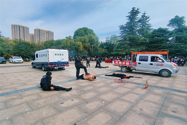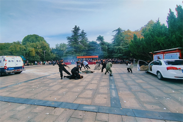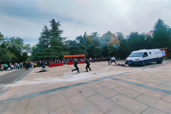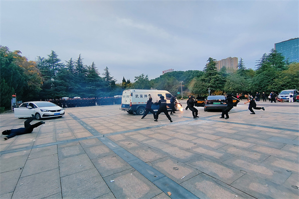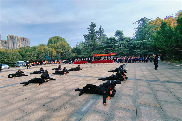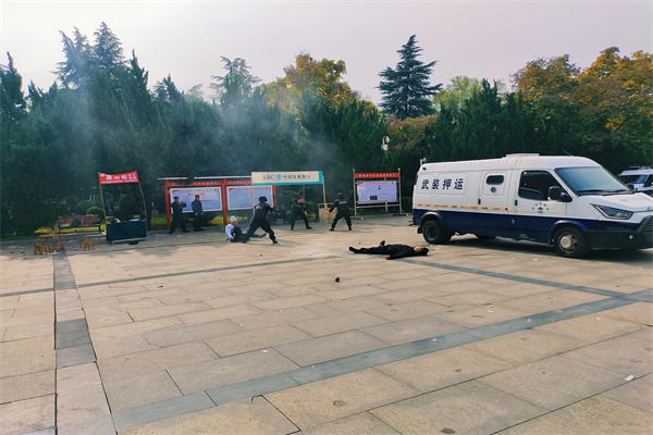 11月1日上午,同一場地迎來了押運分公司市區(qū)6個中隊的考核評比??偨?jīng)理張建輝、監(jiān)事長陳公偉等公司領(lǐng)導(dǎo)到場觀摩。隊列動作整齊劃一,擒敵配套迅猛有力,防搶演練情景逼真、處置果斷,200余名隊員以昂揚的斗志和專業(yè)的素養(yǎng),全面展示了押運隊伍的訓(xùn)練成果和應(yīng)對突發(fā)事件的實戰(zhàn)能力。